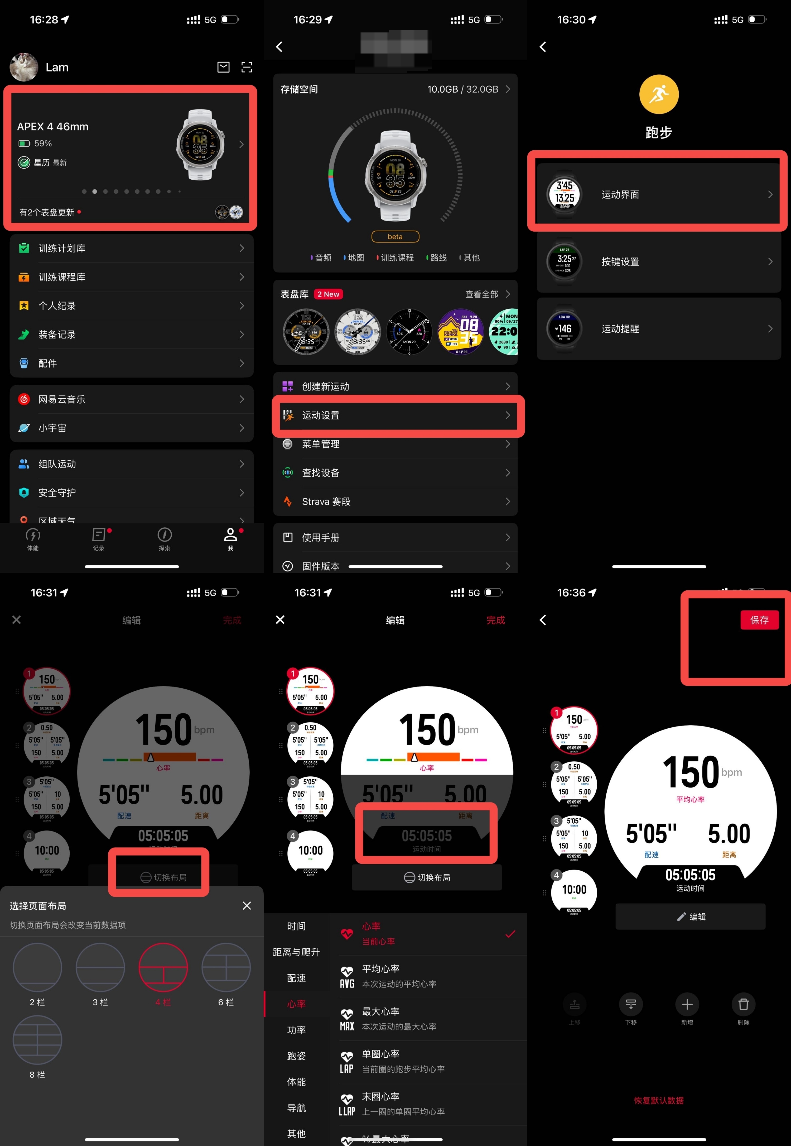 PS:手表在运动模式下也可以连接APP完成自定义运动界面。
