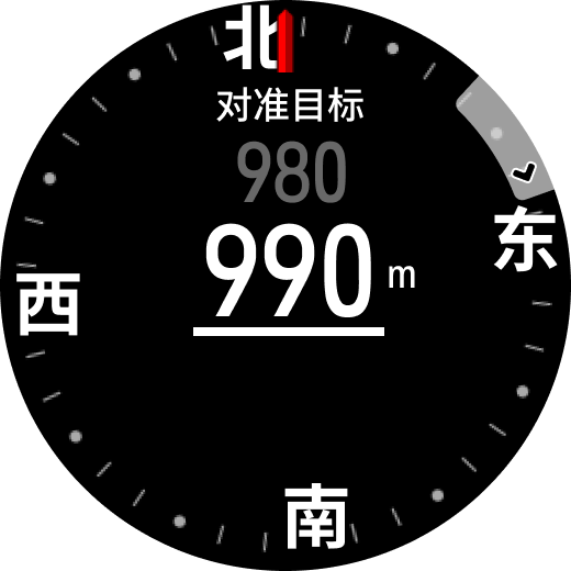附近位置:远处有景物或动物但人无法到达,可以用这个添加附近位置功能,蓝色箭头对准目标方向,旋转旋钮输入与目标之间的大致距离,再进行定位,最远支持990米