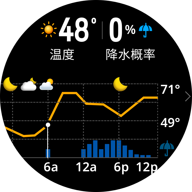 “区域天气”可以用来关注指定位置(最多5个)的近期天气及环境信息,帮助您进行户外运动决策。