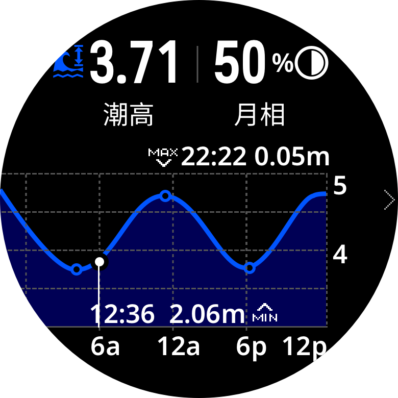 在App--我--区域天气--新增位置,可搜索选址或地图选点,保存并同步后即可在手表的区域天气中查看。二级页面可显示气温降水,风力,气压,日出日落,月出月落,潮汐信息。潮汐需所在地100km范围内有为COROS提供数据源的水文站。内陆地区无潮汐数据。