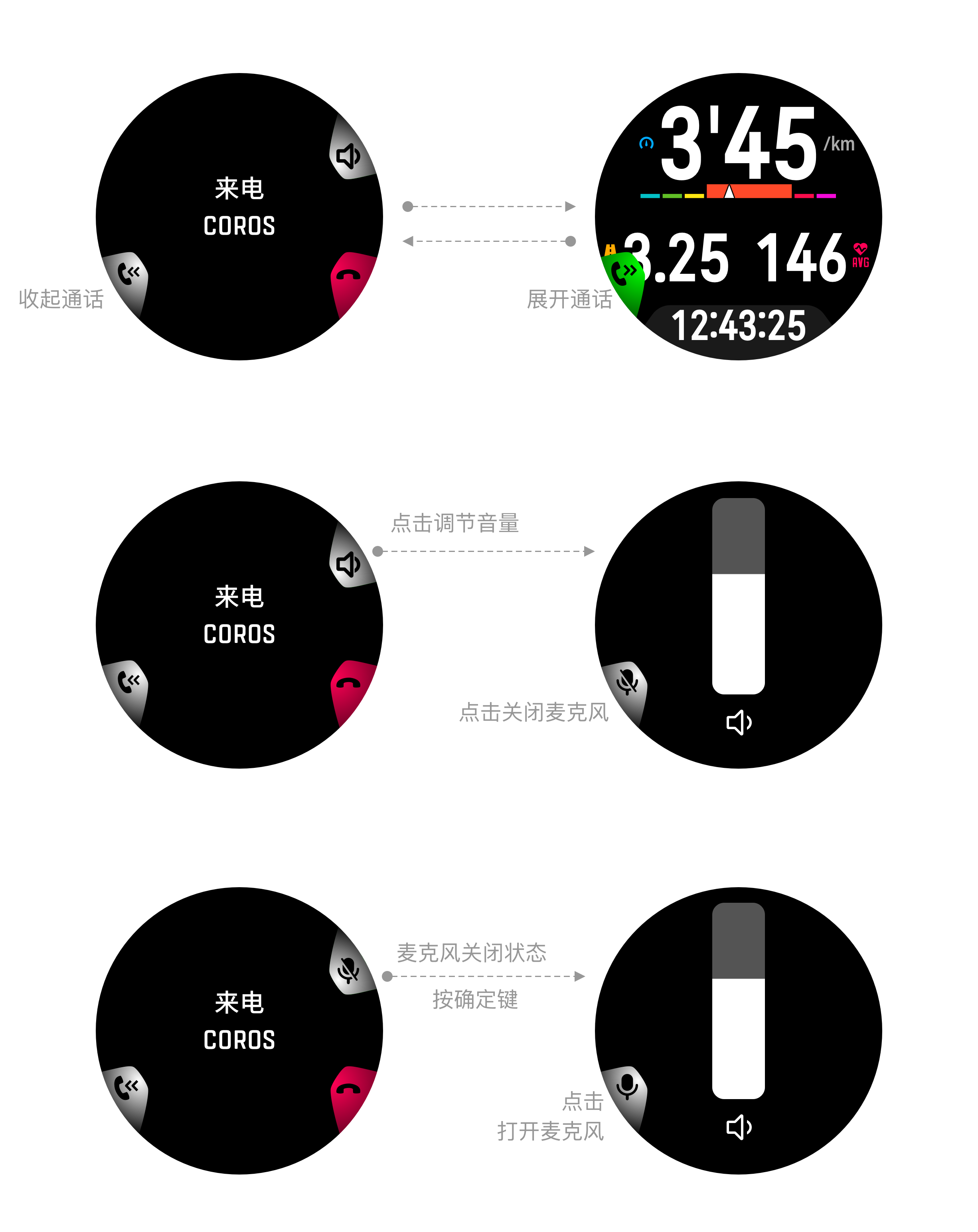 COROS APEX 4 全新搭配了扬声器,通话功能设计简洁高效,专为运动场景优化,通过智能连接与直观操作实现高效通话管理