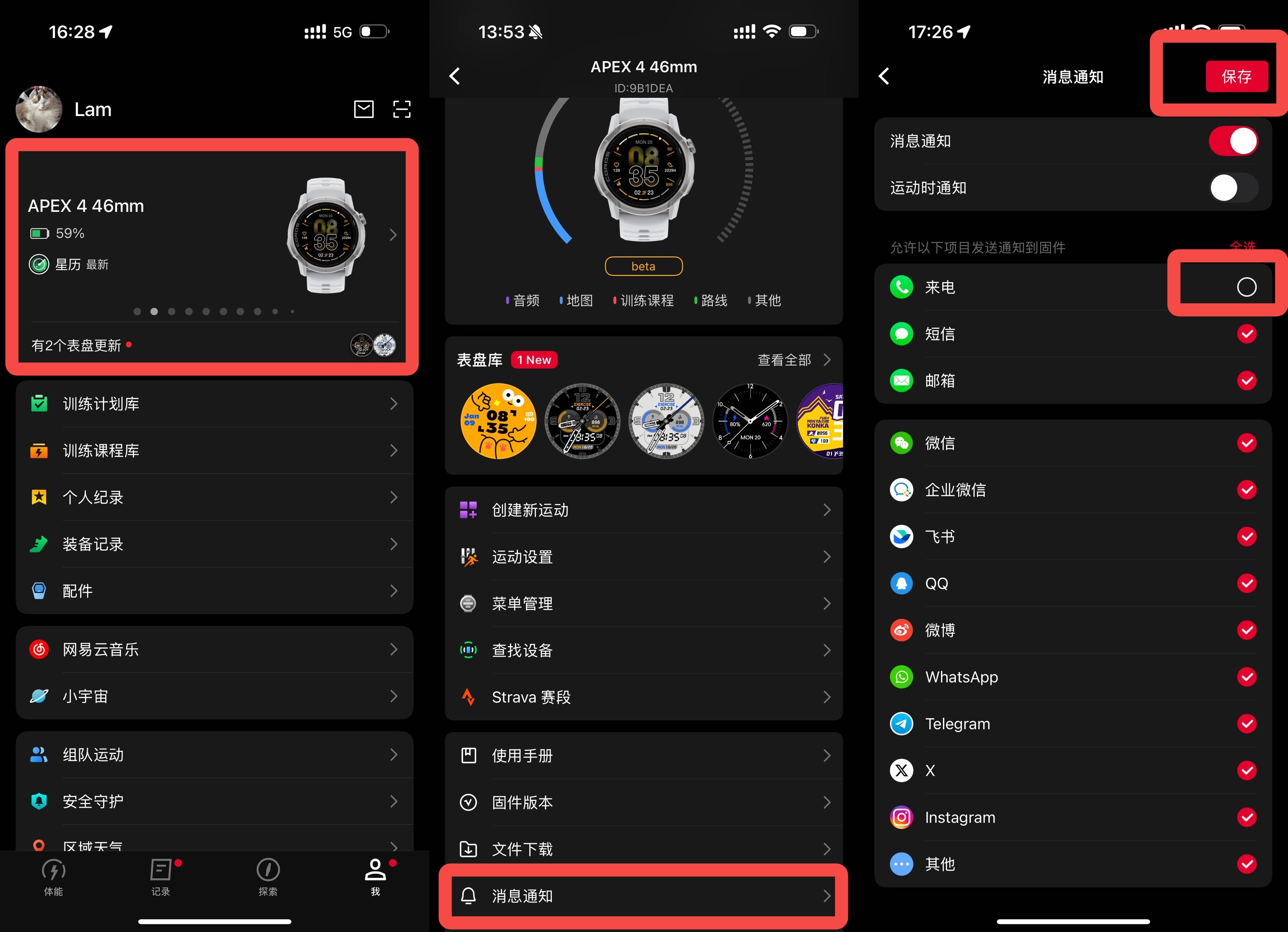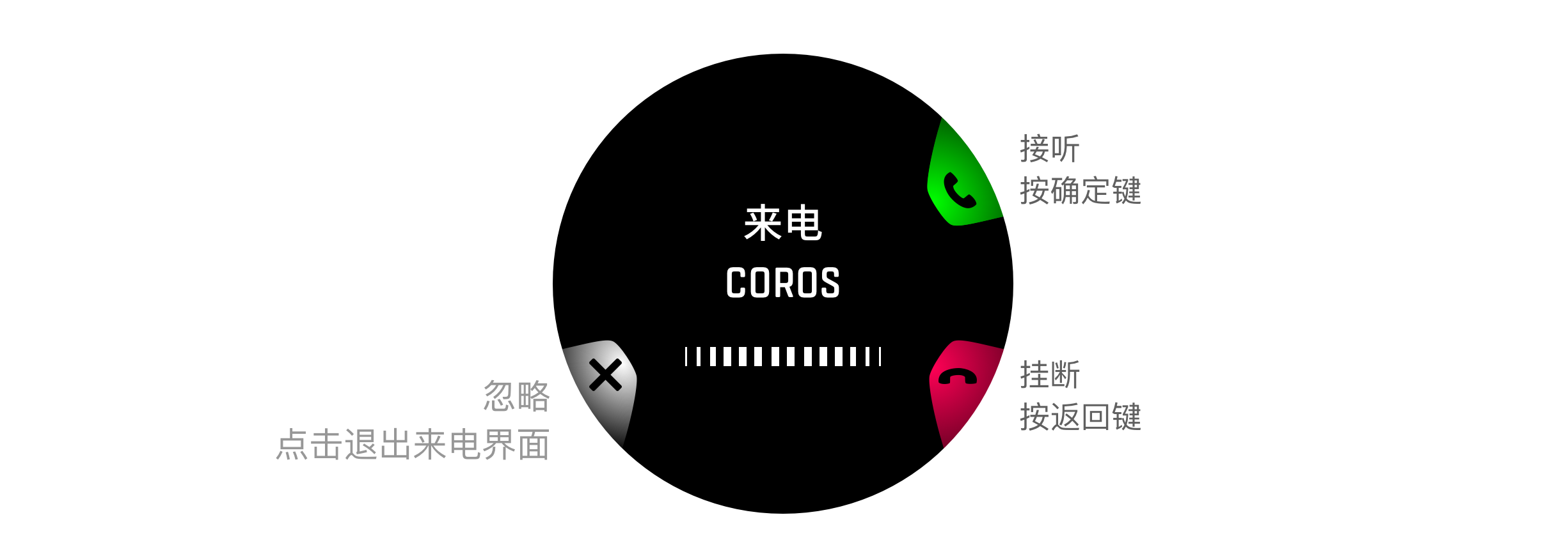 A1:APP端设置来电权限:我的设备——消息通知——勾选“来电”(需确保手机在附近且COROS应用在后台运行,手表与手机保持连接)