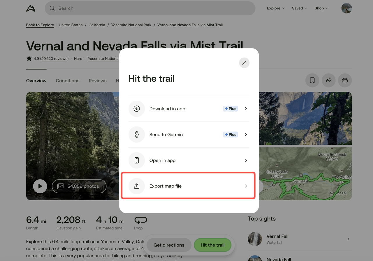 AllTrailsからGPXファイルをダウンロードする際は、AllTrailsの公式サイトにてアカウントへログインする必要があります。ログイン後、以下の手順に従ってGPXファイルをダウンロードし、COROSアプリにインポートしてください。