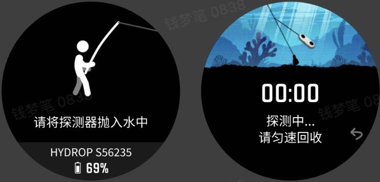 *小工具中HYDROP功能和路亚运动水情探测器界面,仅在手表配件设备列表中已绑定过HYDROP时才显示。