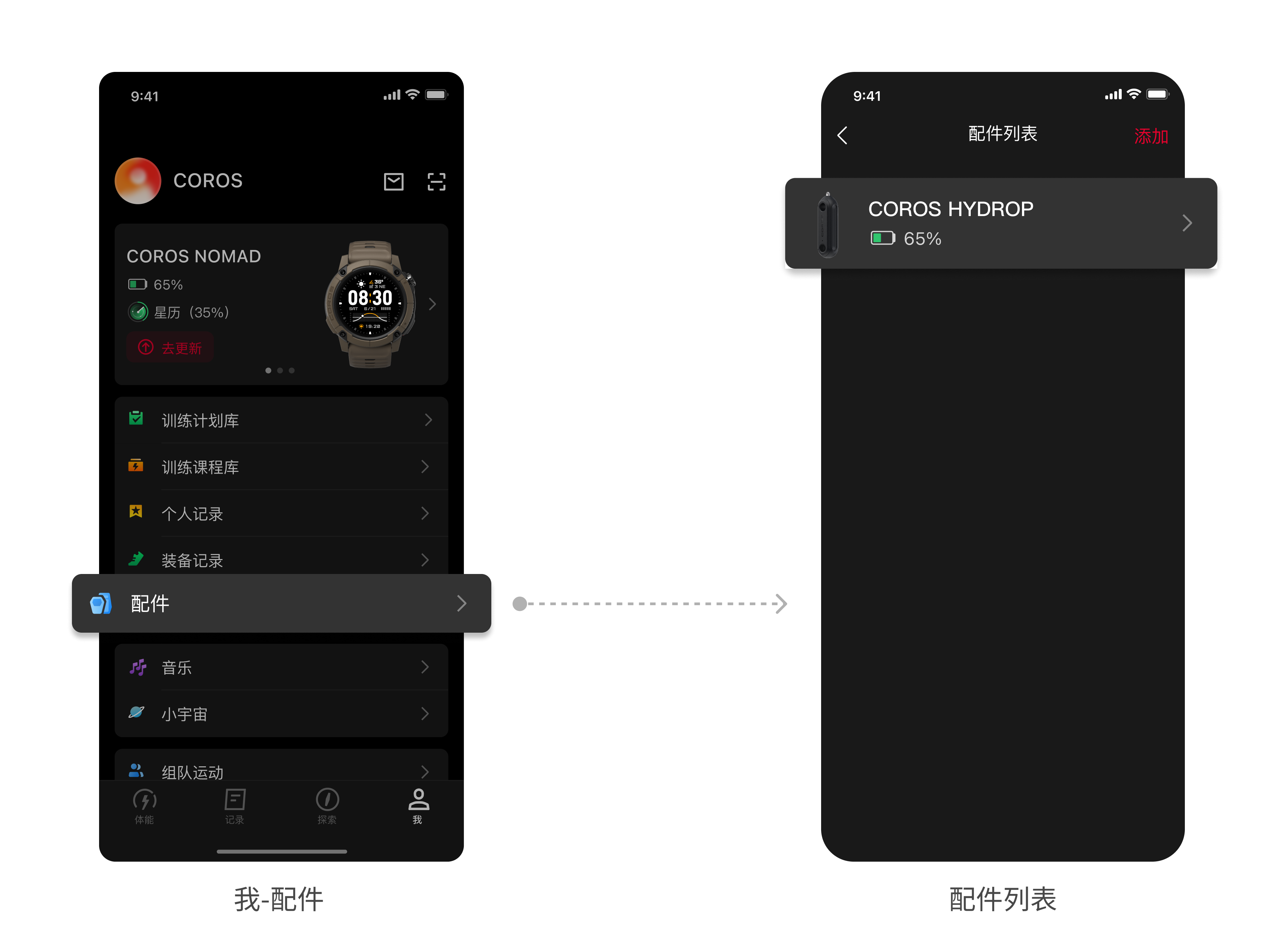 2.2.1、APP进入我--配件--添加配件设备;
