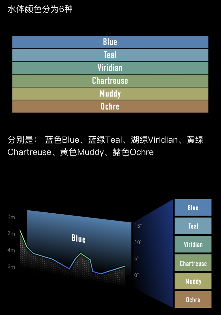 10.1、水色分为6种,如图: