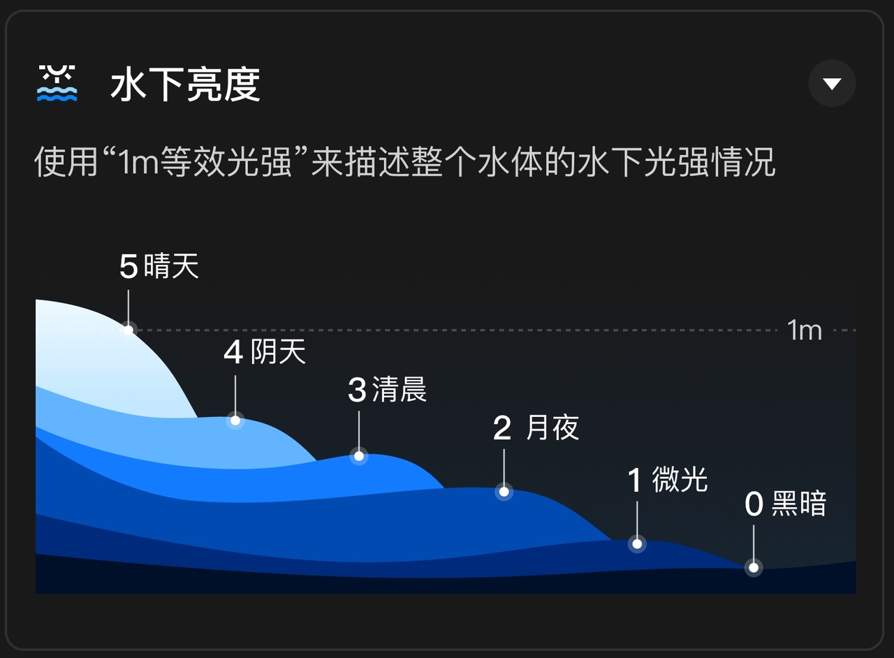 11.1、水下光强分为6个等级,表示该环境条件下接近水表面的光强,如图: