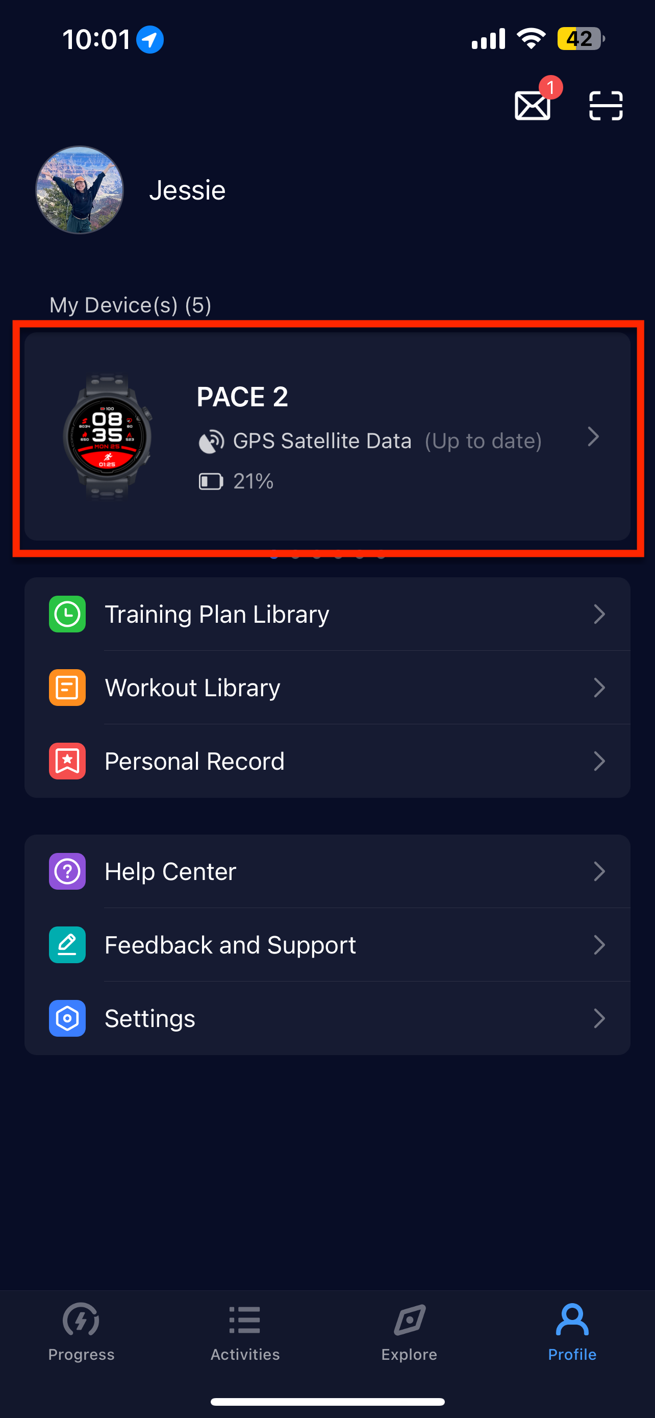 衛星データが更新されていれば、デバイスは既に上空に存在すると予想される特定の衛星を探すように設定されています。しかし、遠くまで移動したり、デバイスをアプリに数日間同期していなかったりすると、デバイスはこのターゲットを絞った検索を実行できず、代わりにより広範囲の検索を行う必要があり、結果的に時間がかかります。そのため、アプリのプロフィールページで衛星データの更新を求めるメッセージを確認し、デバイスから衛星に接続して、新しい場所の衛星情報が最新であることを確認してください。