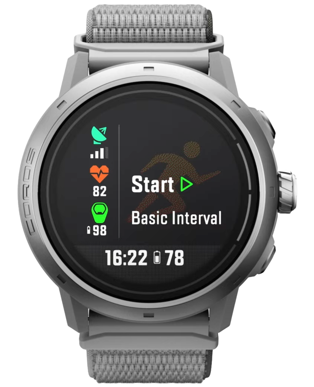 屋外アクティビティの開始画面で、衛星アイコンが点灯するまでお待ちください。これは衛星信号を完全に取得したことを示します。さらに精度を高めるため、取得後も約1分間そのまま待ってからスタートすることをおすすめします。